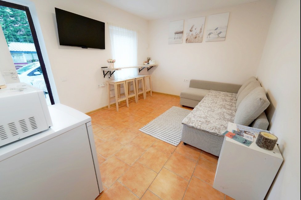 „Kiras“ - keturvietis su atskiru įėjimu, dušu ir WC, lauko stalo dalimi